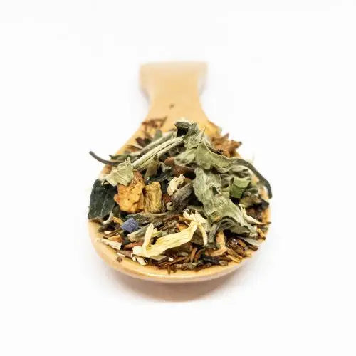 White tea - rooibos - dried apples - Siberian ginseng - cinnamon - cardamom - nutmeg